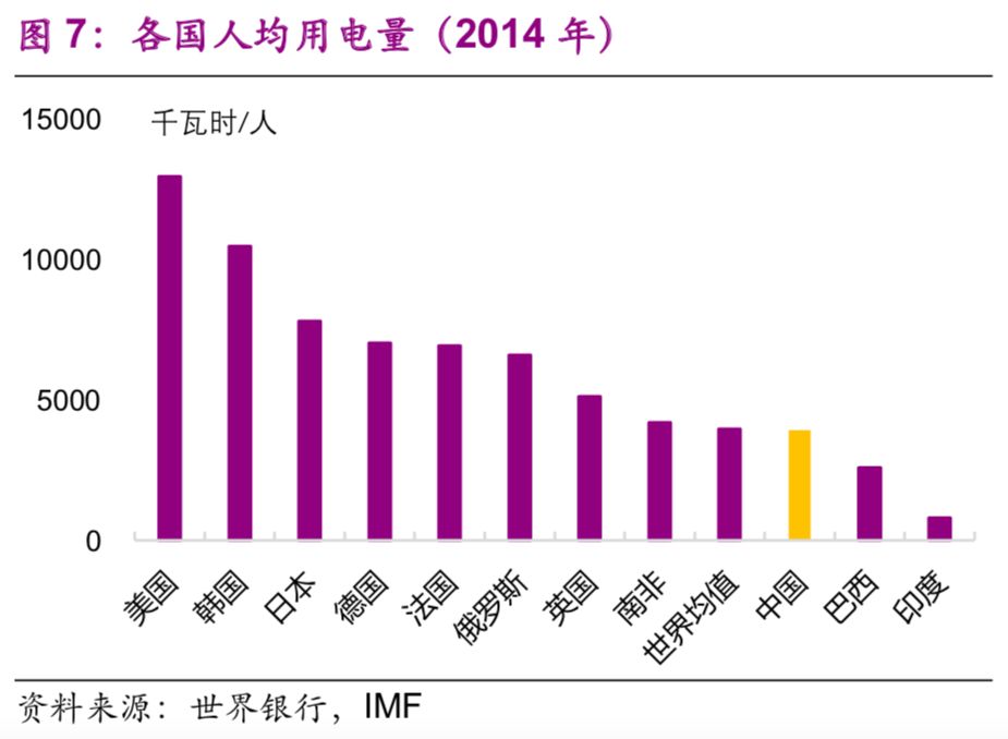 人均用電量則有所差異,部分西部資源輸出省份較高。排名前三的是寧夏(1.3萬千瓦時/人)、青海(1.1萬千瓦時/人)、內(nèi)蒙古(1.0萬千瓦時/人)(圖37),而世界均值為0.4萬千瓦時/人。